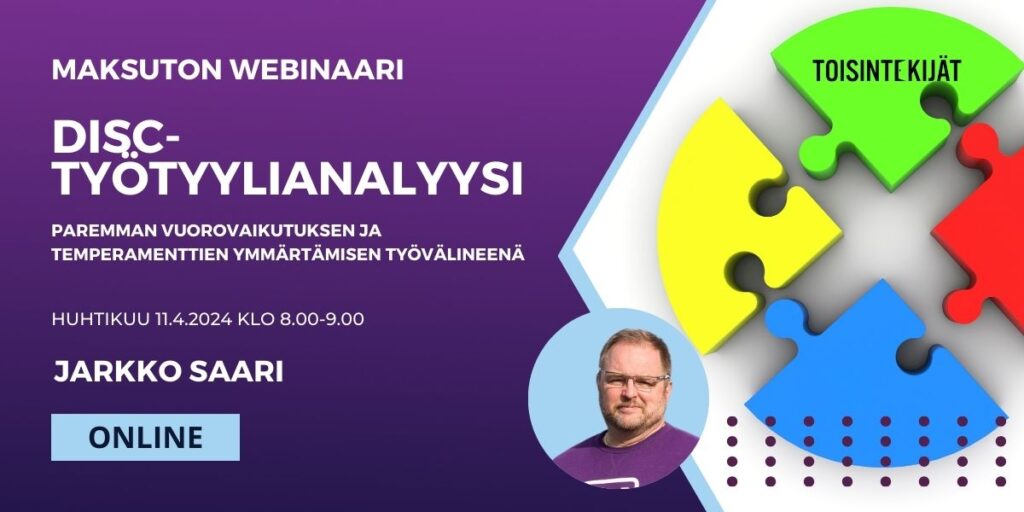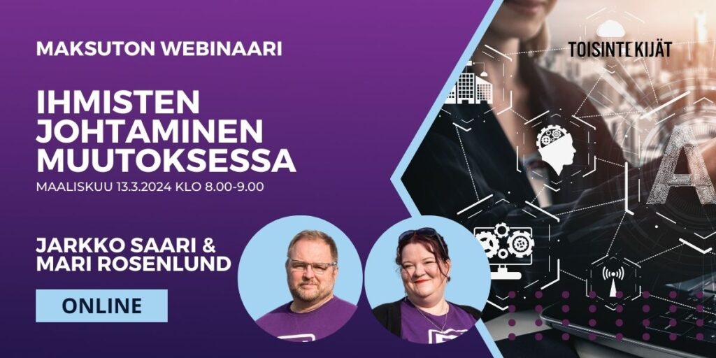 Ihmisten johtaminen muutoksessa on edellyttää vahvaa ihmisymmärrystä. Liity webinaariimme oppimaan, miten voit johtaa tiimisi menestyksekkäästi muuttuvissa tilanteissa.
